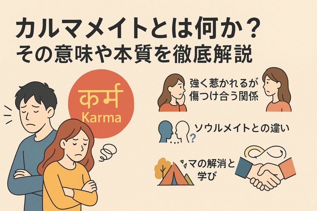 カルマメイトとは、魂の成長を促す特別な縁の相手のことです。この記事では「カルマメイトとは」というキーワードを軸に、語源や特徴、ソウルメイトとの違い、出会う意味、関係性の扱い方などをわかりやすく解説します。 カルマメイトとは? カルマメイト... -