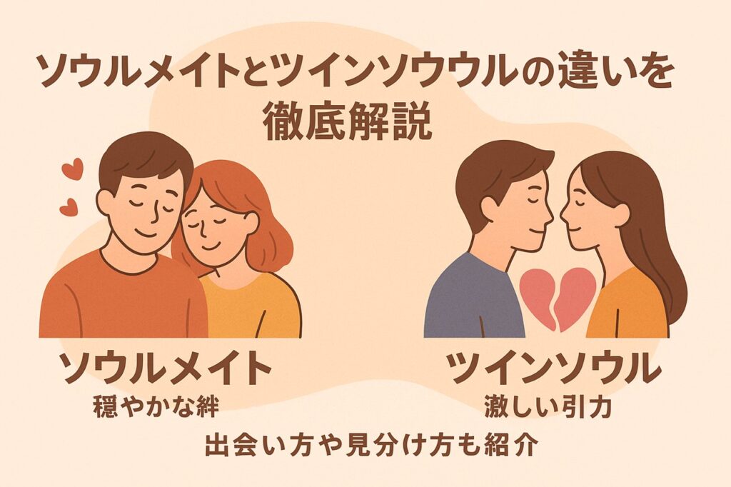 ソウルメイトとツインソウルはスピリチュアルな関係性の違いがあります。魂の起源や出会いの目的・関係の深さに違いが見られます。この記事では「ソウルメイト ツインソウル 違い」をキーワードに、それぞれの意味や特徴、比較表や見分け方、出会いのポイ... -